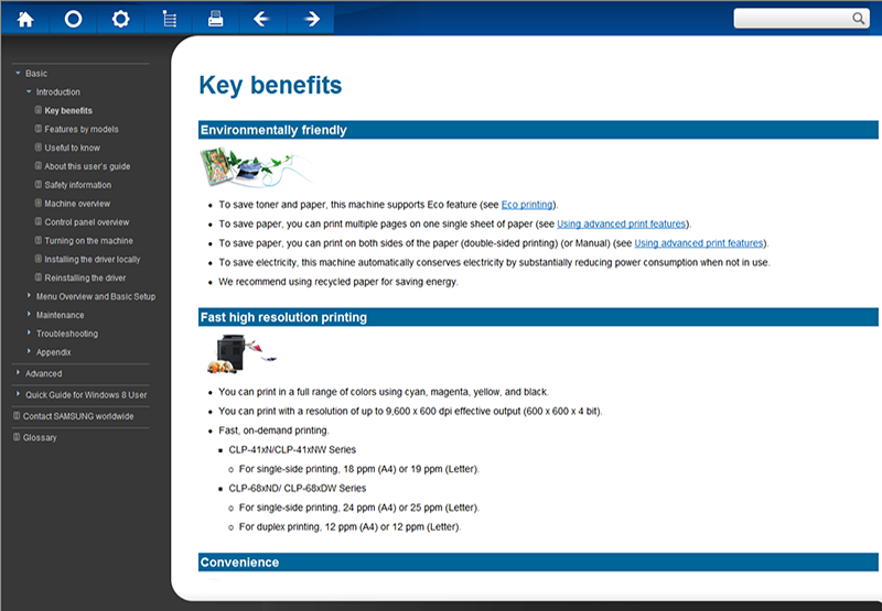 For Samsung, we used a single source in the XML authoring and publishing environment to produce different versions of the same user manual. These versions allowed us to optimize the content for a wide range of browsers and operating systems.